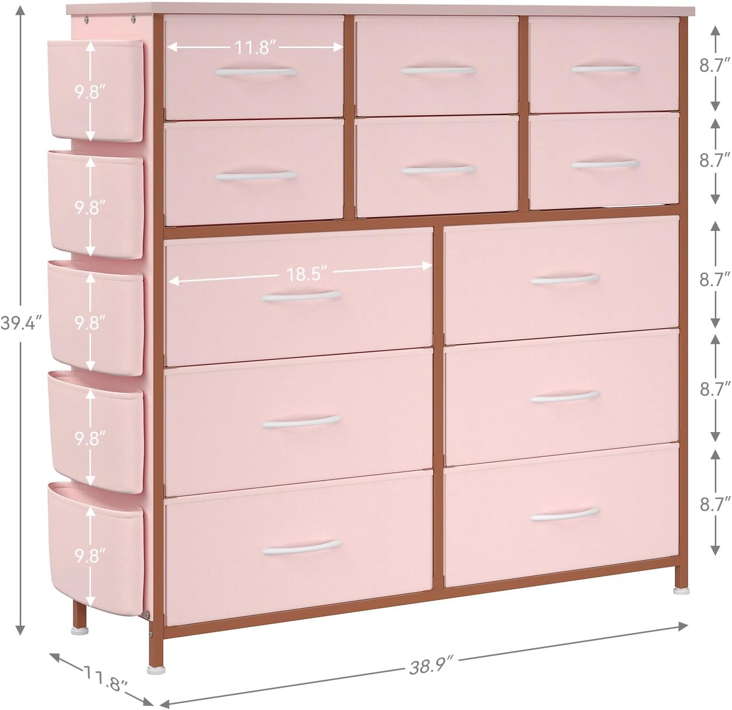 | Size | 11.8"D x 38.9"W x 39.4"H (12 Drawers) |