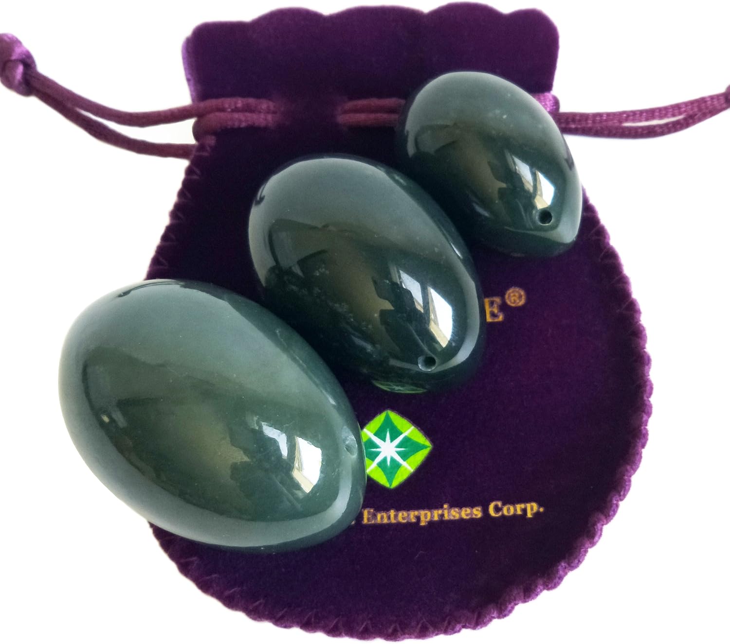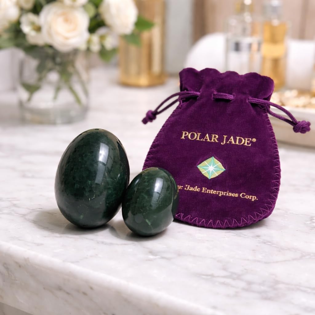This 2-piece undrilled nephrite jade stone egg set by Polar Jade is crafted from 100% natural and genuine nephrite jade. The set includes one Large egg measuring approximately 2 × 1.4 inches (50 × 35 mm) and one Medium egg measuring approximately 1.7 × 1.2 inches (43 × 30 mm). Each stone egg is hand-carved and manually polished to achieve a smooth, refined finish that showcases the natural beauty, density, and weight of authentic jade. The solid, undrilled design provides a seamless surface and a clean, minimalist appearance. The jade is completely untreated, with no dyes, fillers, or chemical processing, allowing the stone’s natural color, texture, and structure to remain intact. Variations in tone may range from light green to dark green or near-black, reflecting the uniqueness of natural nephrite jade. Every set includes clear user instructions, certificates of authenticity, and purple velvet jewelry pouches for storage or gifting. This versatile set is well suited for mindfulness routines, meditation practices, natural stone collections, or elegant decorative display. Note: As a natural stone product, variations in color and pattern are normal and expected.