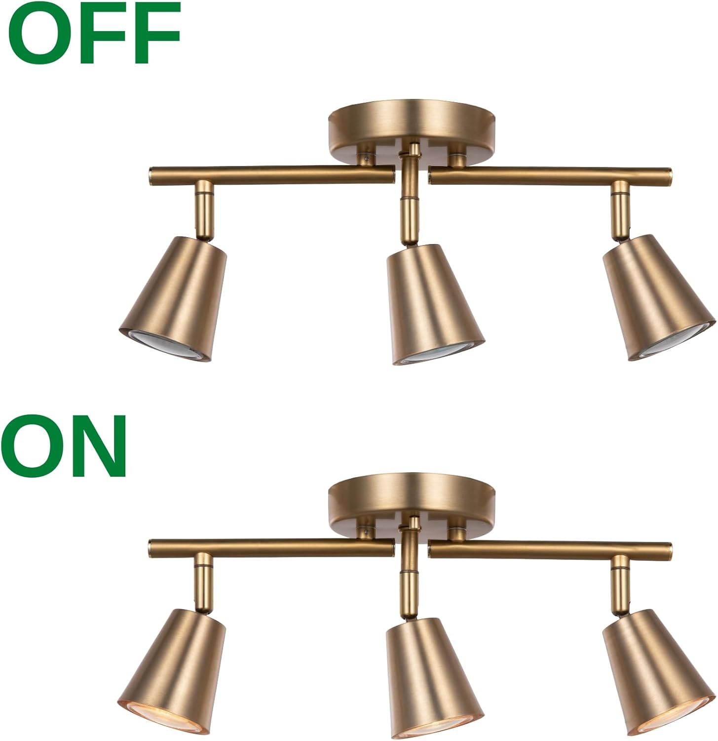 3 Light Track Lighting Kit, Matte Brass Finish Adjustable Flexibly Rotatable Light Head Modern Ceiling Spot Light for Kitchen,Bedroom,Living Room