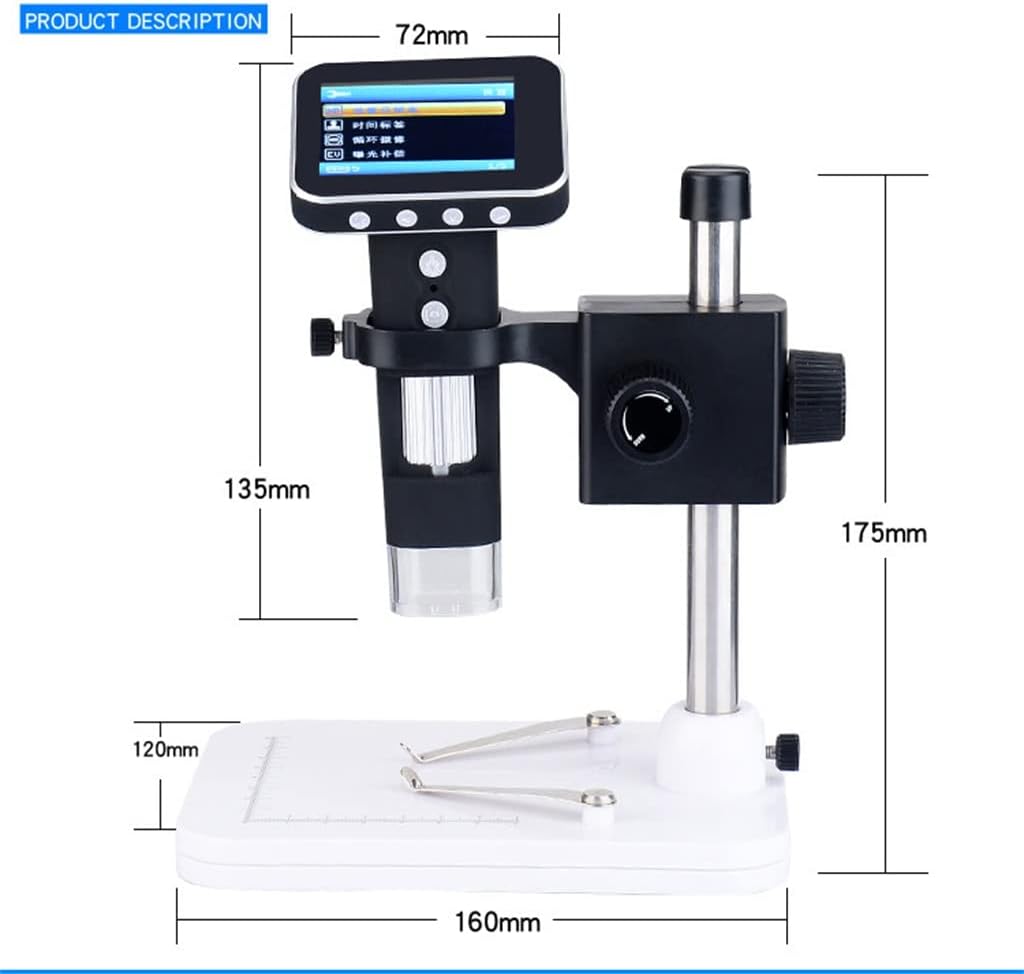 Multipurpose and more convenient to operate, the loading platform can hold any small object for close observationThis microscope has an innovative screen design and is equipped with a 3.5-inch display screen, allowing you to clearly see the objects you need to observe without connecting to a computerFocal length adjustment roller. When taking photos or recording, rotating this roller can adjust the focal length and the captured objectThis microscope is equipped with 8 LED energy-saving lights and a roller adjustment at the cable for different purposesObjects can choose different light sources to achieve the desired effectSensor: high-performance photosensitive chipMain control chip: dedicated main control 16Bit DSPMagnification: 500 ×.Auxiliary light source: 8 white LED lightsScreen size: 3.5 inch high-definition screenDigital zoom: multi segmentImaging distance: manually adjustable from 0 to Image SizePackage Included:microscope*1If you have any questions about the product, please me, we will you within 24 hours and give you a satisfactory answer.Supports memory card insertion for taking photos and videos
