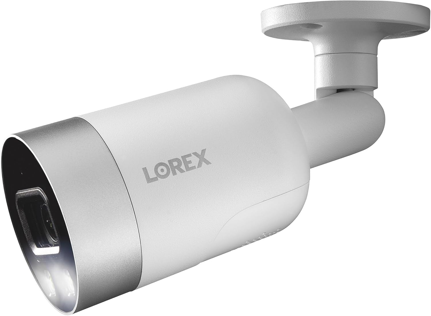 See more and know more with the Lorex E891AB-E 4K Smart Deterrence IP Camera This add-on camera features advanced person and vehicle detection technology so you know when someone is at your door or when a vehicle pulls into your driveway with immediate notifications to your Lorex Home app Witness stunning 4K resolution providing you with superior video and added clarity Take your security to the next level with dual motion-activated LED warning lights and a remote triggered siren designed to deter uninvited guests You can even hear and speak directly through your camera with 2 way talk allowing you to communicate easily with visitors Pair with a compatible Ultra HD network recorder like the Lorex N841 Smart Detection NVR and the Lorex Home app to experience a truly unparalleled security solution