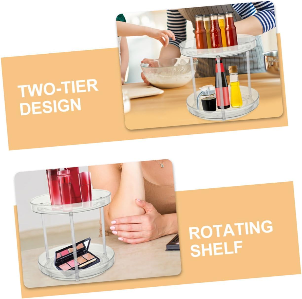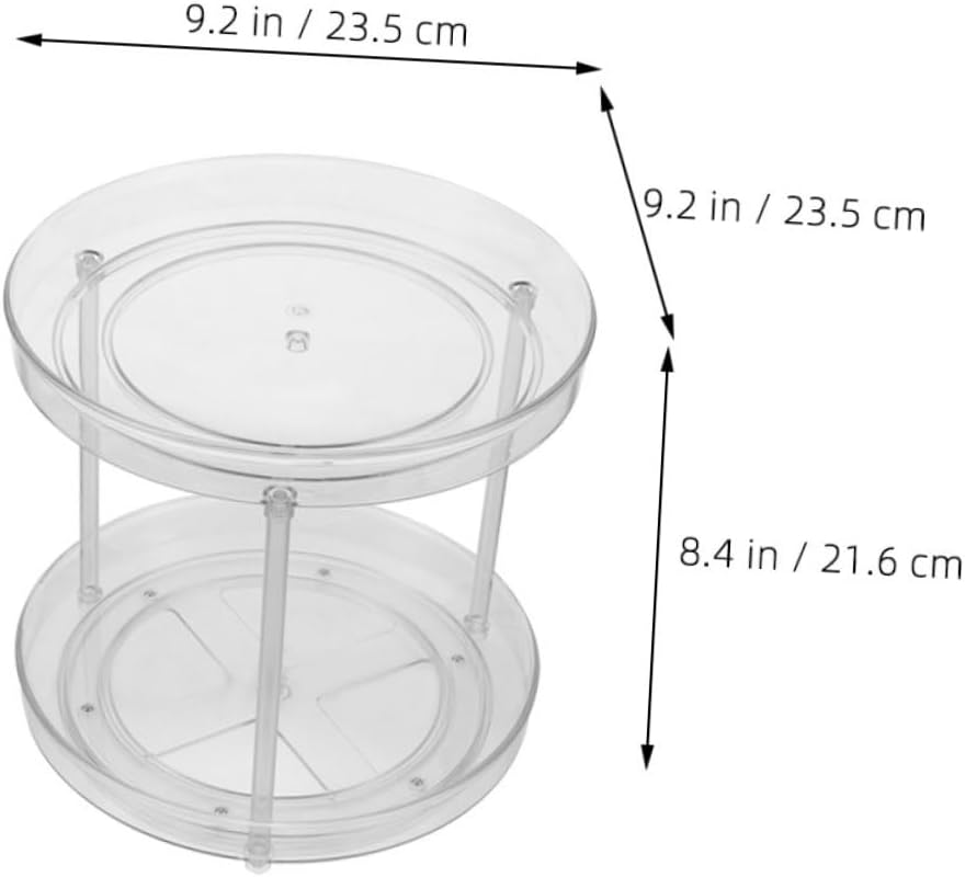 Package Include 1 rack Features -Color:Transparent Turntable Organizer -Size:23.50X23.50X21.60cm/9.24X9.24X8.49in Kitchen Supplies -Material:Plastic Spice Rack -This Rotatable Seasoning Holder has a large capacity, making it ideal for storing a variety of kitchen utensils, appliances, and season in a neat and organized manner Condiment Rotation Organizer. -This Round Spice Jar Organizer Tray is crafted from firm plastic materials, with a stylish design Rotating Tray for Makeup. -With its multifunctional design, this Round Rotating Makeup Tray is for organizing your home or , while also saving valuable space Makeup Tray. -This turntable spice organizer is for organizing your cosmetics and skincare products, making them easy to access and use rotating spice rack. -Suitable for use in a variety of settings, including the study, bathroom, bedroom, living room, kitchen, dressing table, and more Rotating Organizer Tray.Goods InformationRound Spice Storage Tray Features the plastic material, which has high durability, not easy to deform.Rotating Makeup Tray Fine workmanship, ensures practicality.Rotating Organizer This rotating storage rack is made of solid material, which can withstand long-lasting use