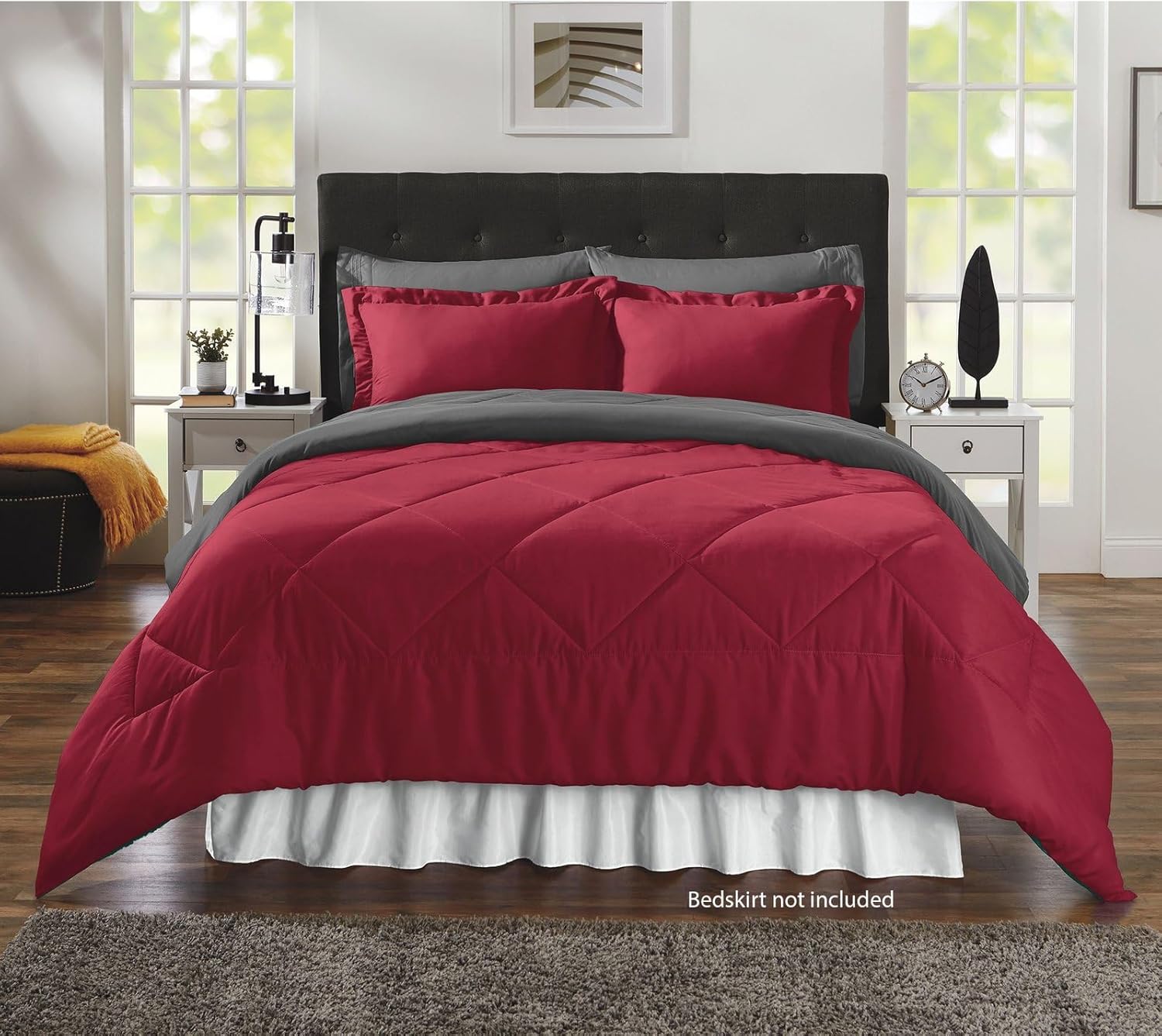 Bring cozy comfort and timeless style to your bedroom with the Stoneberry Home All-Seasons Reversible Comforter Set. Made with velvety peachskin fabric and filled with plush down-alternative poly fill, this set delivers softness and warmth without the weight. Its diamond quilting adds a decorative touch, while the reversible design offers two stylish color options, allowing you to effortlessly switch up your look. Ideal for year-round use, the lightweight construction keeps you warm in winter and cool in summer. Each set includes a comforter and coordinating shams: Twin comes with a 68" × 90" comforter and one 20" × 26" sham; Full/Queen includes a 90" × 90" comforter and two 20" × 26" shams; King features a 104" × 90" comforter and two 20" × 36" shams. Perfect for dorms or guest rooms. Pair it with your favorite sheets, cozy blanket, and pillows for a fully layered, inviting sleep setup. Durable, soft, and machine washable, this reversible comforter set makes everyday luxury easy to maintain. Whether refreshing your space or shopping for a new comforter for college, apartment, or home, this all-season essential brings comfort and style in one cozy package. Bedskirt not included.