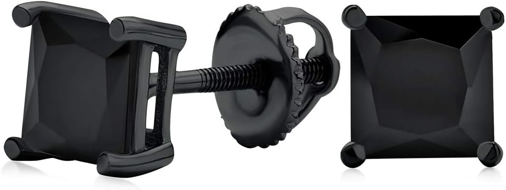 • STUNNING DESIGN - The square simulates onyx CZ thats being held by black rhodium plating. These stud earrings are easy to match to any outfit, and with a screw backing for pierced ears, you can be sure your earrings will stay on all night long.