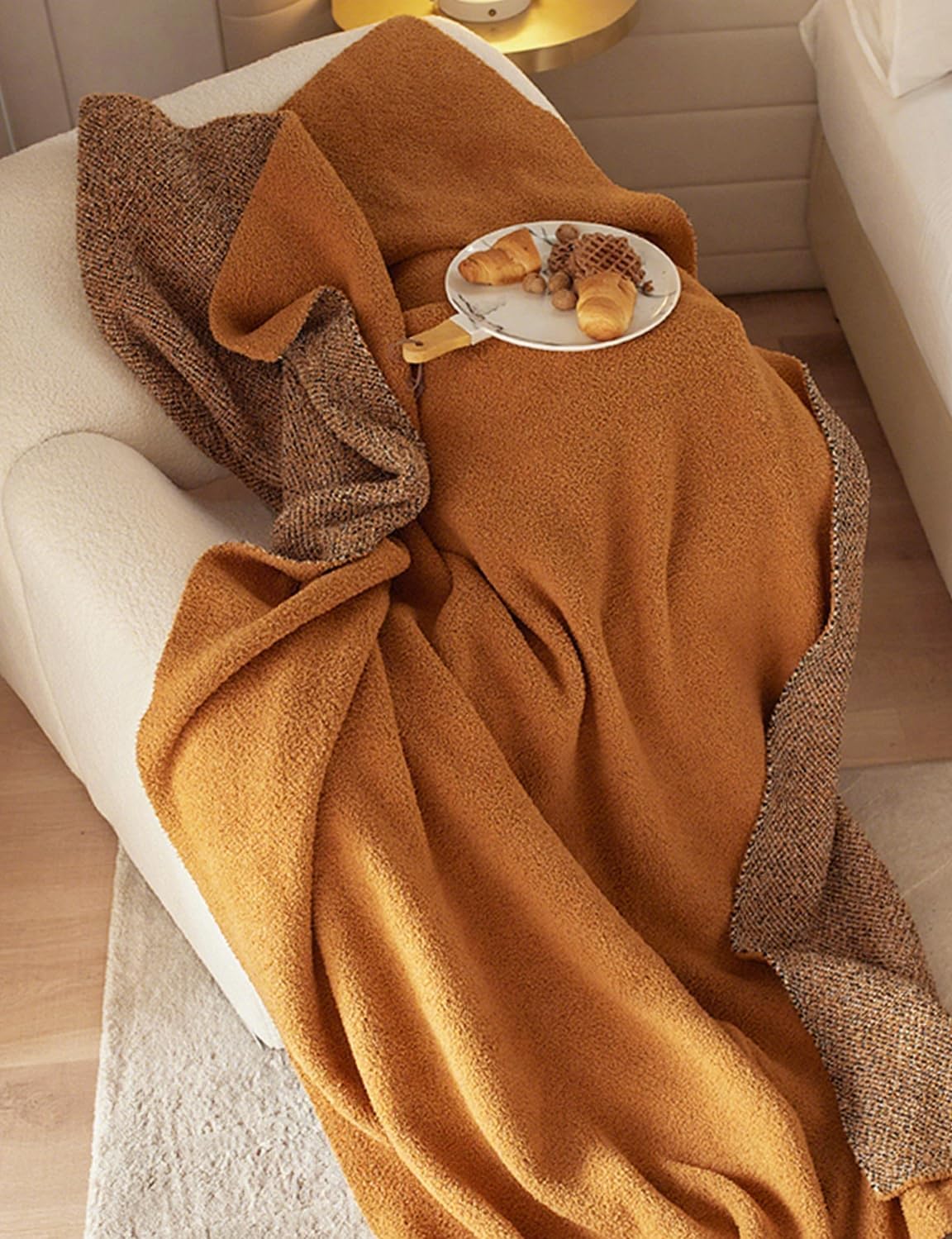 The rich burnt orange hue adds warmth and depth to any room—perfect for modern, rustic, or boho interiors. Snuggle into softness. Our reversible microfiber fleece throw brings together cozy texture and timeless design—perfect for any season, any space. Two looks in one—classic fleece on one side, a chic melange-style texture on the other. Flip to suit your mood or decor. Oversized Comfort Sized at 50x70 inches, this throw offers full-body coverage and stylish draping over beds or sofas. All-Season Use Made from breathable microfiber fleece—lightweight, soft, and warm enough for every season. Bring Warmth to Every Corner Whether you're curling up on the couch, layering your bed, or adding a pop of color to your reading nook, this throw makes everyday moments feel a little more special.