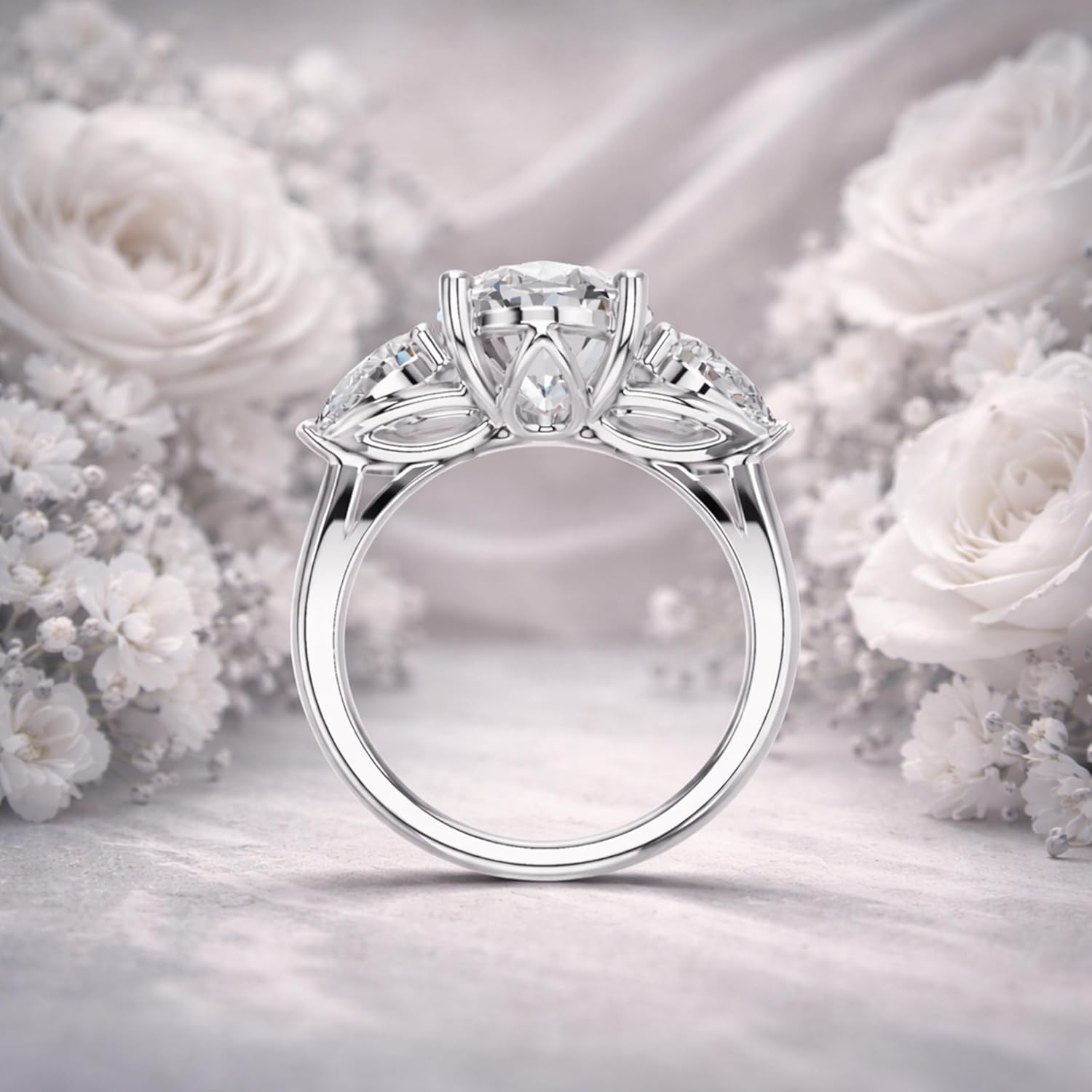 3 Carat Certified Oval Lab Grown Diamond Engagement Ring Make a statement of timeless elegance with this stunning 3 carat certified oval lab grown diamond ring, beautifully complemented by pear shaped side stones (0.35 carat each). This three stone design symbolizes your past, present, and future with exceptional brilliance. Featuring a certified center diamond for assured quality and authenticity, this ring is expertly crafted in 10K, 14K, or 18K solid gold and available in white, yellow, and rose gold, offering lasting luxury and everyday comfort. The elegant and refined setting makes it perfect as an engagement ring, bridal ring, or meaningful gift, combining modern sophistication with the ethical beauty of lab grown diamonds. Center Stone: 3 Ct Certified Oval Lab Grown DiamondSide Stones: Pear Shape, 0.35 Ct EachMetal: 10K / 14K / 18K GoldColors: White, Yellow, Rose GoldStyle: Three Stone Engagement Ring A perfect blend of certified quality, brilliance, and craftsmanship designed to celebrate your forever.