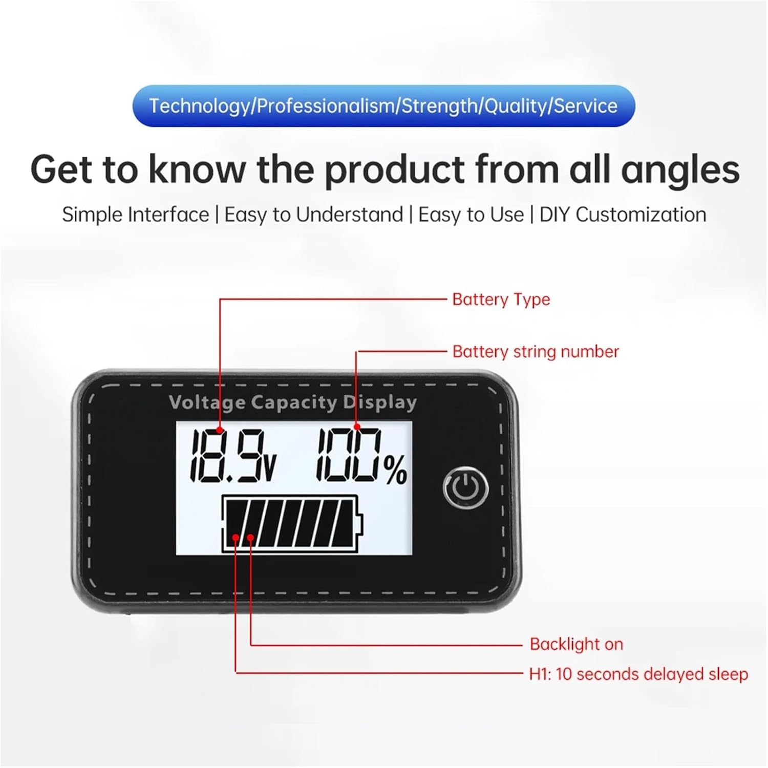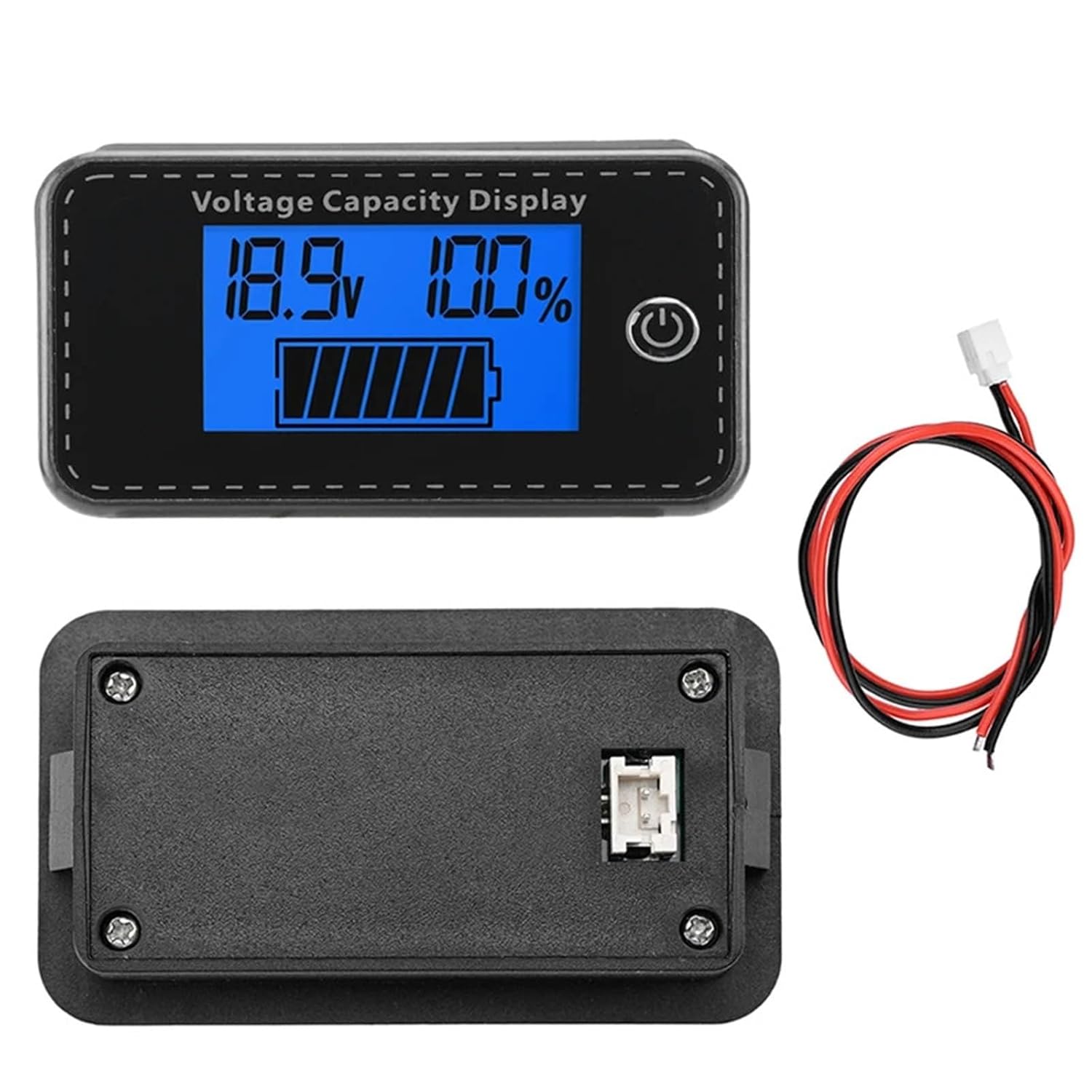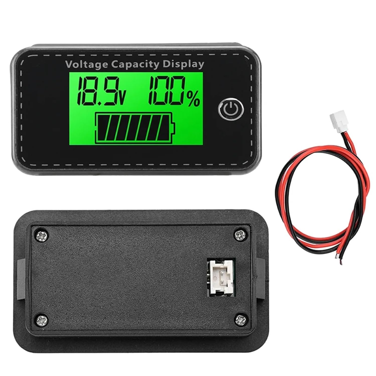 AmmetersDC 5-100V Battery Capacity Indicator LCD Digital Electricity Voltage Meter Battery Tester for Car MotorcycleFeatures:1. Power, voltage dual display, high precision, LCD display is more intuitive and clearer2. Acid batteries, lithium iron batteries, lithium batteries, storage batteries, etc. are universal.3. Good stability, high precision and strong anti-interference ability.4. With reverse connection protection, even if the wire reverse connection will not be damaged.5. Applicable products: electric cars, battery packs, sweepers, balance bikes, cars, tricycles and so on.Specifications:Working voltage: DC 5~100V<;10mA<;10uADisplay mode: LCD displayDisplay color: green, blue, white (optional)Installation: EmbeddedPower cord length: about 20cmProduct size: 64*36*13.5mmOpening size: 58.5*28.5mmPackage included:Power Indicator*1Red and black wire *1Battery specifications:P=Acid Battery, L=Lithium Ternary Battery, F=Lithium Iron Phosphate Battery, DIY=Customized Battery Voltage (Dead/Full)Nominal voltage of single battery:Acid battery: 12V, Li-ion ternary battery: 3.7V, Li-FePO4 battery: 3.2VAcid battery P: 1~7S can be set (single 12V nominal)Lithium iron ternary battery L: 2~23S can be set (single 3.7V nominal)Lithium iron phosphate F: 2~27S settable (single 3.2V nominal)Custom DIY: 0% and 100% voltage custom setting