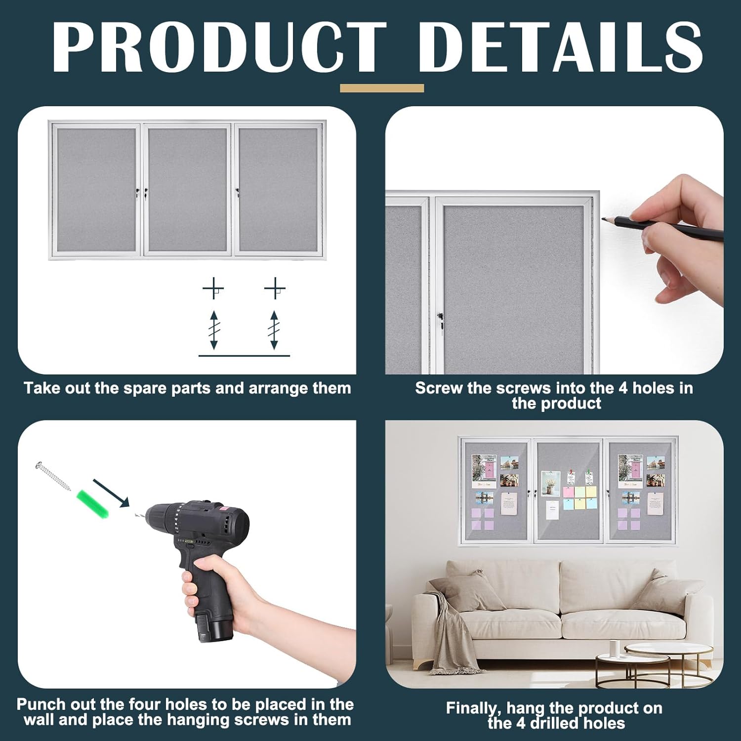 Features: Safe and relivable: Our cork enclosed display case feature lockable, transparent doors to keep notices safe from vandalism or tampering while still providing a good display of information. Wide Application: The cork display cabinets are suitable for schools, schools, offices, bars, kitchens, communities, and other public places, and can be applied for many purposes, such as posting notices and displaying artworks or photos, displaying public information. Specifications: Material: wood, anodized aluminum Color: multicolor Size: about 72 x 36 inches/ 183 x 91.4 cm (LH) Package includes: 1 x Enclosed bulletin board 3 x Locks 6 x Keys Notes: Manual measurement, please allow slight errors on size. The color may exist a slight difference due to different screen displays.