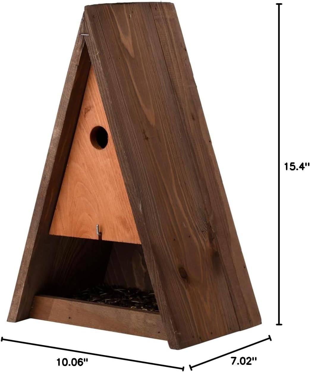 Combination of bird- house and feeder: House suitable for blue tit with bird feeder (suitable for bird food seed mix) underneath. Except for the Blue Tit, you can also expect the Crested Tit, the Marsh Tit, the Willow Tit and the Coal Tit in this bird house and maybe a European Robin would nest in the bird feeder. This house is packed per 30 pieces in a display. Dimensions display with header card: WxDxH: 80 x 60 x 90 cm. Weight fully stocked display: approx. 60 kg.