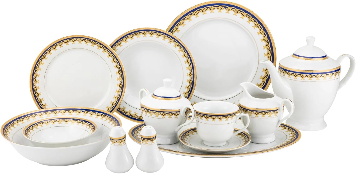 This simple yet elegant service for 8 is a terrific addition to your dinnerware collection. Whether for entertaining or for everyday use it will give you eating enjoyment. Whether buying Euro Porcelain for its appeal or for its practical durability, it is a beautiful addition to one's dinnerware cabinet. The intricate designs of Euro Porcelain may wow dinner guests even more than the food served on them, and they make an unusual decoration when purchased for display only. Euro Porcelain is famous for it's exceptional quality and eloquent design. Comes in gift packaging and makes an impressive gift that will be remembered. Enjoy!