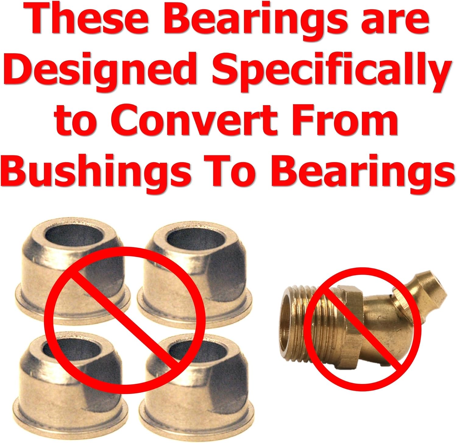 HD⚡SWITCH Welded Steering Spindle Kit with Bushing to Bearing Conversion Kit and Caster Hardware and Top Black Caps. Eliminate axle wear and grease with our bushing to bearing conversion kit. Our kit is engineered to replace bushings with smooth high quality precision bearings with steel trash seals. One kit will convert both wheels and includes all required hardware.