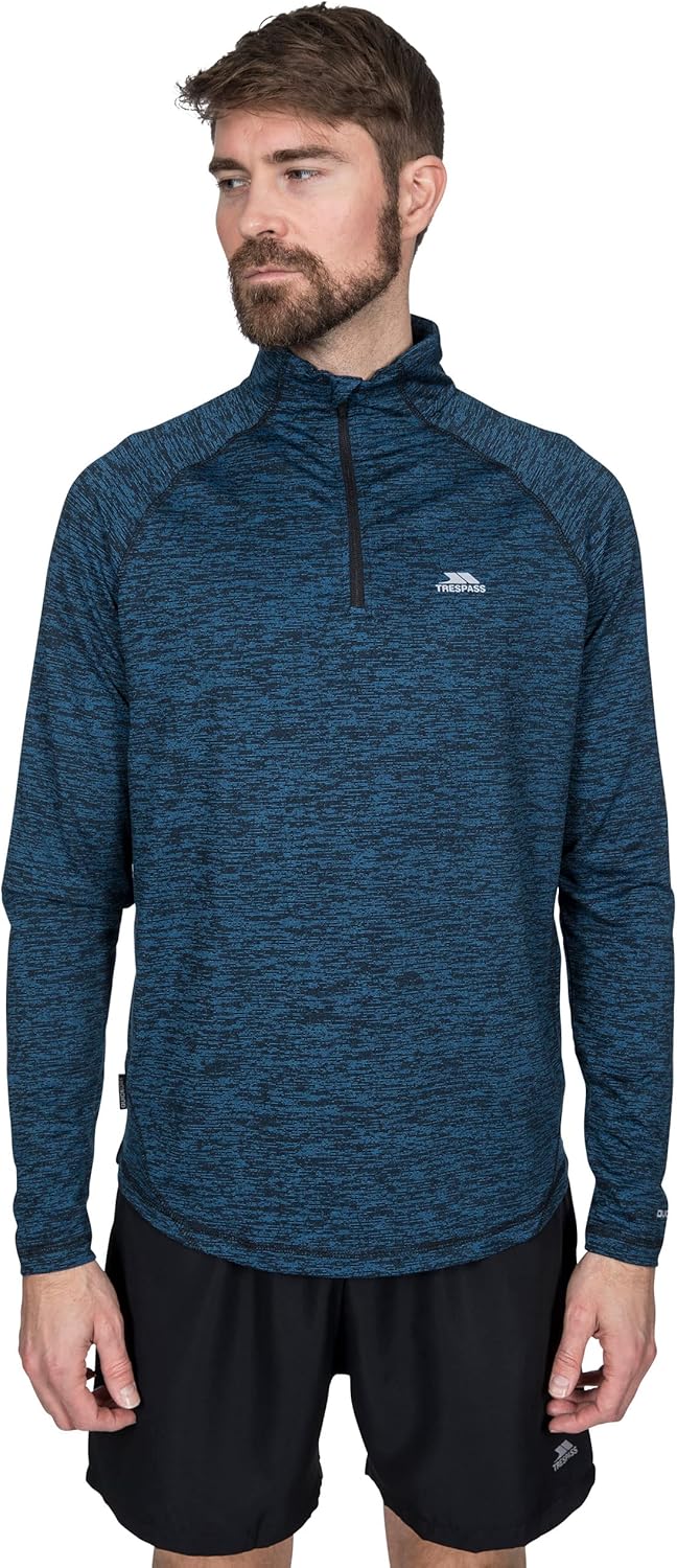 1/2 zip. Long sleeve. Contrast back neck binding. Reflective printed logos and trims. Wicking. Quick dry. 88% Polyester. 12% Elastane. Trespass Mens Chest Sizing (approx): S - 35-37in/89-94cm, M - 38-40in/96.5-101.5cm, L - 41-43in/104-109cm, XL - 44-46in/111.5-117cm, XXL - 46-48in/117-122cm, 3XL - 48-50in/122-127cm.