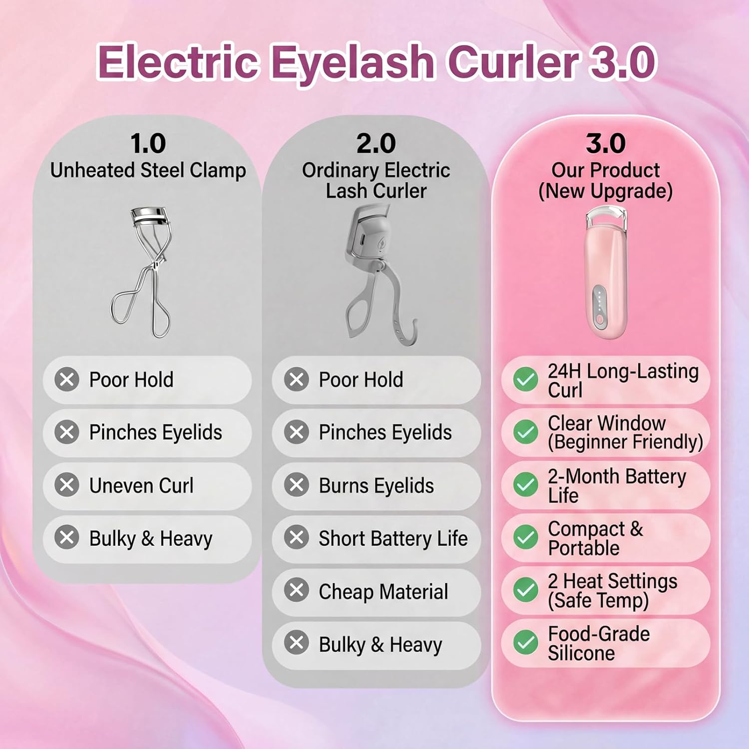 Heated Eyelash Curler - 2-Level Temperature Adjustment, Type-C Rechargeable mini Eyelash Curler, 8-Second Quick Heating, 24-Hour Lasting curl, Easily Creating Natural and Beautiful Eyelashes