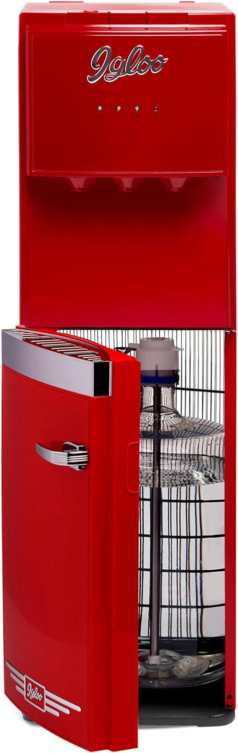 Igloo White Bottom-Loading Water Dispenser is the perfect addition to any home or office, providing access to hot, cold, or room-temperature water with just a push of a button. With its innovative bottom-loading design, these water dispensers ensure that lifting heavy jugs is a thing of the past. The system seamlessly integrates with 3 or 5-gallon bottles, offering an easy and efficient way to keep your hydration station stocked. The water dispenser design not only makes refills quick and easy but also prevents the mess that comes with traditional top-loading models. Our water bottle dispenser system features a compact and stylish design that blends seamlessly into kitchens, offices, or dorms. Its sleek and space-saving structure ensures that it doesn't take up too much room, offering a perfect balance of functionality and aesthetic appeal. The electric water dispenser allows you to instantly switch between hot, cold, and room-temperature water, making it an ideal choice for a variety of drinks like tea, coffee, and ice-cold beverages. This water cooler bottom loading unit is not only practical but also easy to use. The user-friendly interface ensures that even first-time users can quickly understand how to operate the system. The dispenser delivers a consistent supply of hot or cold water, making it perfect for busy environments like homes, kitchens, and offices. Additionally, the bottom loading water jug dispenser system ensures a hassle-free water supply, allowing you to maintain a clean and organized space while enjoying fresh water all day. Safety is always a priority, and the home water cooler dispenser offers a child-safety lock to ensure that hot water is dispensed only when needed. The cooling water dispenser functions efficiently and chills water for a refreshing drink in seconds. Whether you're using it for making tea, instant soup, or just staying hydrated, this bottle dispenser meets all your needs, making it the perfect solution for anyone looking to add convenience and style to their living or working space.