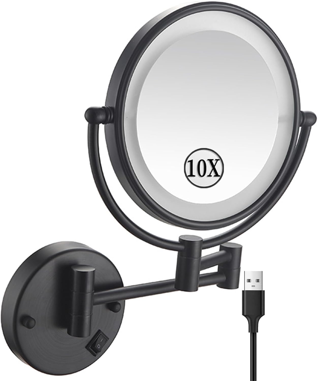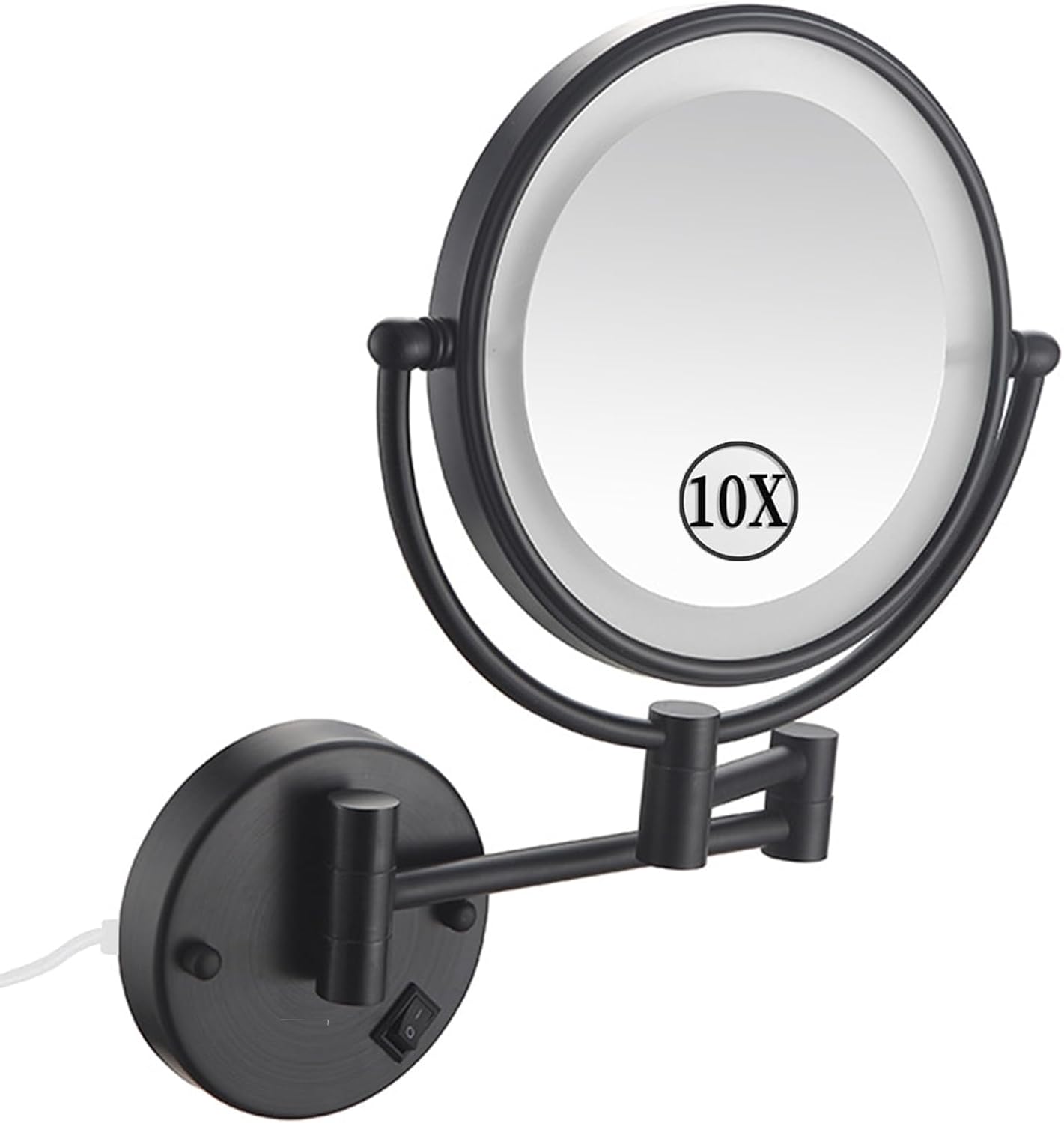 Item Type: LED Lighted Makeup MirrorType: Adjustable Wall Mounted Shaving Vanity MirrorStyle: ModernColor: Silver, Black, Brass, Rose gold, Brushed gold, Gold, NickelInput voltage: AC: 85~265VLighted: YesMaterial: Brass + Stainless steel + GlassFeature: illuminated, 2-face, magnifying, dual arm extend360 Degree Rotated Mirror: Easy to adjust the angle you wantDouble sided: Normal and MagnifyingMagnification option: 10XShape: RoundMirror Size: 8 Inches (20cm)Telescopic Range: 26.5cm-45cmSwitch: push switchPower Supply Mode: Hard-Wired (5W), Plug-In (5W), Usb Charging (3.5W)-2600mah, Battery Life 7-8 HoursInstallation Method: Wall-MountedLED Quantity: 42PCSLED Life: 10,000 HoursLight Luminance: 6,500KWarm reminder:Distance between person and mirror: 7-10cm