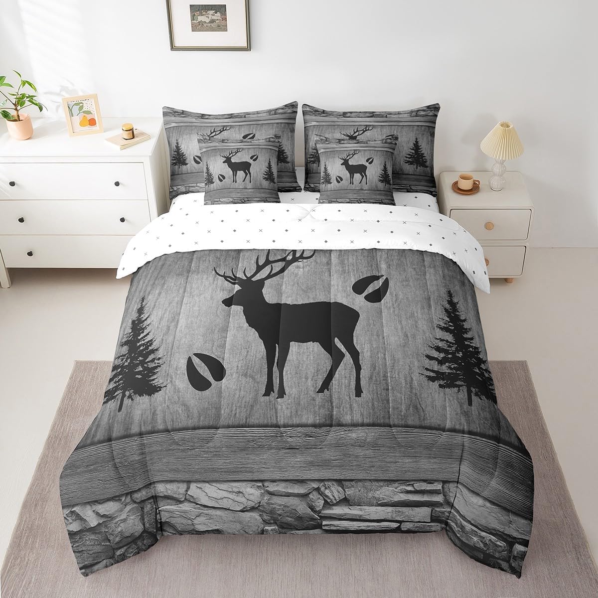 Manfei Rustic Bear Comforter Set 7 Pieces, Wild Animals Hunt Bed Set for Boys Adults, Brown Wooden Plank Bedding Twin with 1 Comforter,1 Fitted Sheet,1 Flat Sheet,2 Pillowcases,2 Throw Pillow Cover