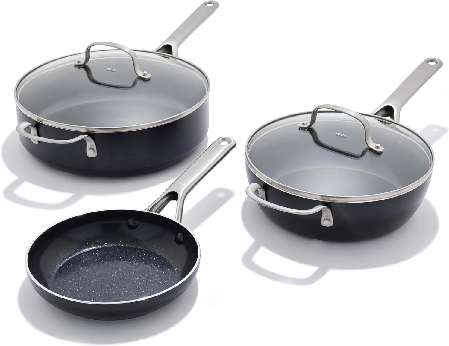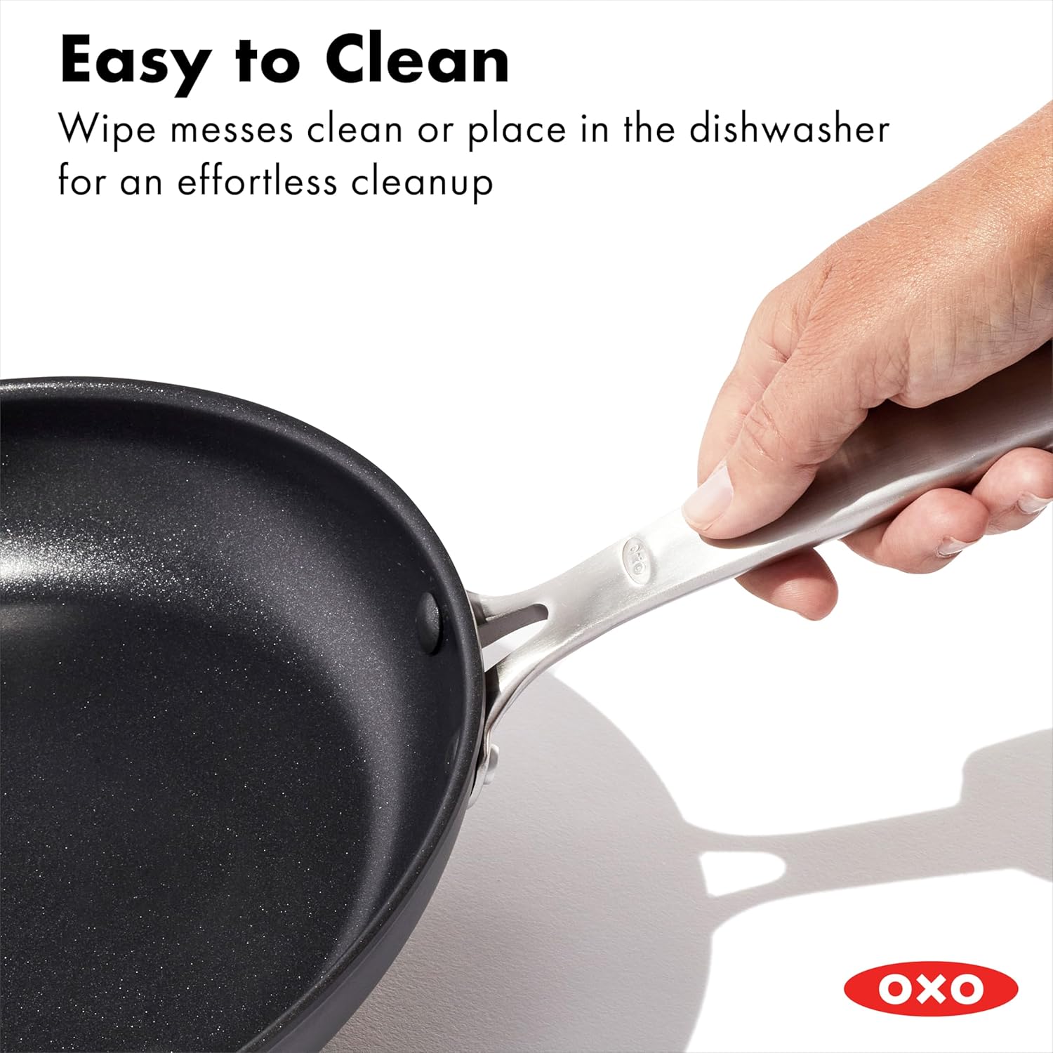OXO Enhanced is high-performance cookware designed to make meals easier. Each pan features a ceramic non-stick coating reinforced with diamonds for daily durability and effortless releases. The durable, hard-anodized bodies heat meals quickly and evenly while providing incredible scratch-resistance. The comfortable stainless steel handles give you a safe and secure grip for simple transfers. OXO Enhanced is oven safe up to 430° and dishwasher safe for hassle-free cleaning.