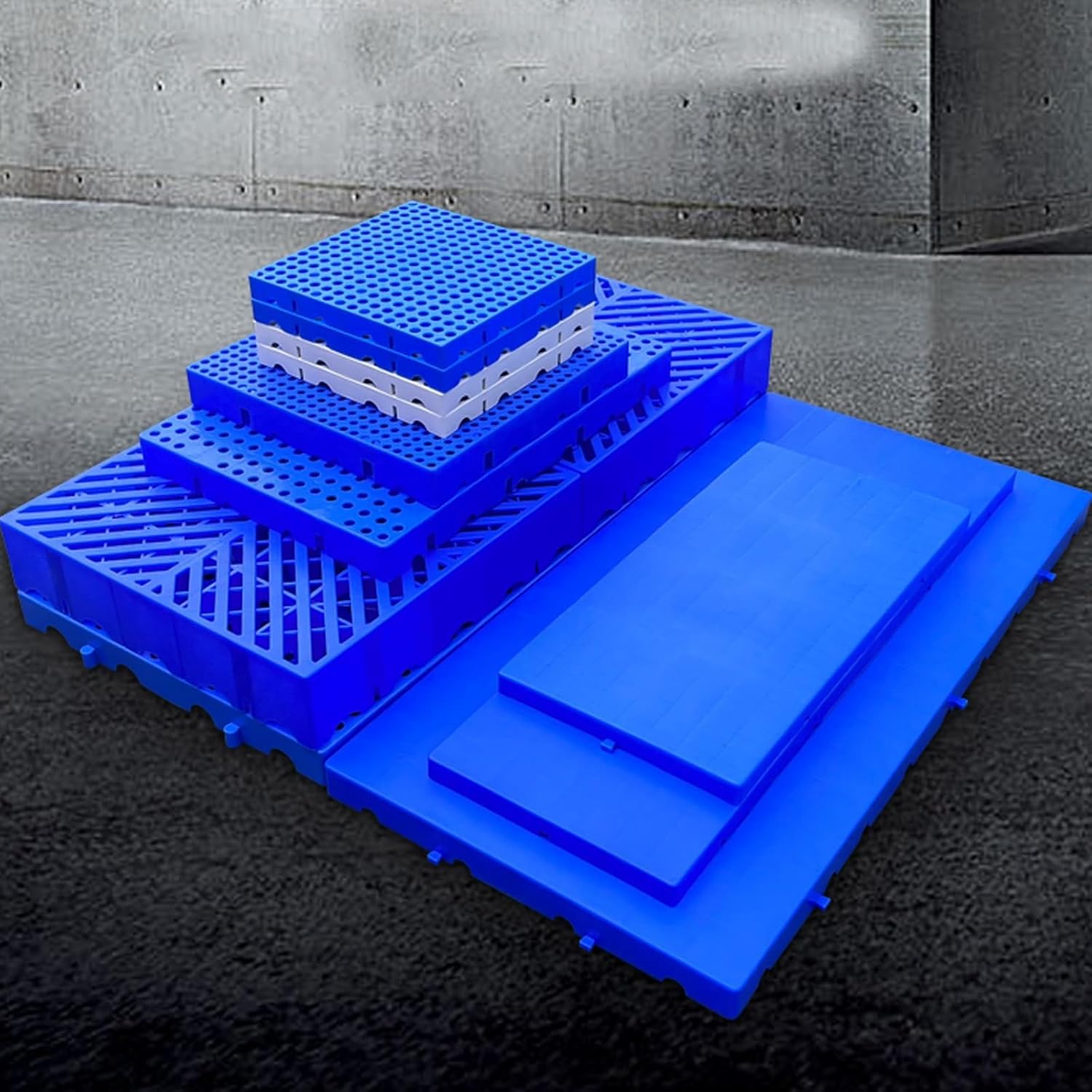 PRODUCT FEATURES1. The plastic pallet is made of HDPE raw material, and the surface is evenly covered with anti-slip particles, which has good anti-slip performance.2. The grid platform pad is equipped with multiple drainage holes to effectively clear the internal water.3. It comes with splicing buckles, which are easy and convenient to splice and can be widely used in various installations.PRODUCT SPECIFICATIONSProduct Name: Polyethylene PalletMaterial: HDPE (Polyethylene) PolyethyleneColor: BlueSize: (L*W*H)100*60*5cm/39.3*23.6*2in100*80*5cm/39.3*31.5*2inLoad Capacity: 1 ton/2200lbsFeatures: waterproof, sunscreen, carbon powder, wear-resistant, cold-resistant, strong load-bearing capacity.Use scenarios: warehousing, supermarkets, turnover, kitchens, garages, outdoor closets, storage rooms, petsPackaging Contents:Plastic nestable pallet x 1