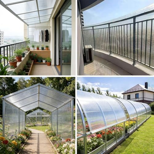 Transform your outdoor space with Polycarte greenhouse panels, designed specifically for conservatories, sunrooms, patios, gazebos, and even outdoor chicken coops. These transparent roofing sheets offer a perfect blend of durability and functionality, providing an ideal solution for light transmission and weather resistance. Crafted from high-quality Polycarbonate (PC), our roofing panels boast an impressive thickness of 0.8mm, ensuring exceptional strength and toughness. With approximately 80% light transmission, they create a bright and inviting atmosphere while still offering around 50% UV protection, making them perfect for both plants and people alike. Installation is a breeze with our easy-to-cut and bendable roofing sheets. You can customize the panels to fit your specific needs using simple tools. The installation options are versatile, including tongue-and-groove screw attachment, silicone sealant, or structural bonding sealant. Just drill holes as needed and secure with wire for a reliable fit. Our Polycarte roofing panels are weather-resistant, enduring temperatures ranging from -40°C to 120°C, so you can trust them to withstand various environmental conditions. Whether you’re creating a cozy garden retreat or a practical shelter for your animals, these panels are designed for long-lasting performance. Each package contains one PC transparent roof panel, ready to enhance your outdoor living experience. Please take care to avoid puncturing with sharp objects and note that other items shown in images are for display purposes only. Elevate your outdoor projects with Polycarte greenhouse panels – where quality meets versatility!