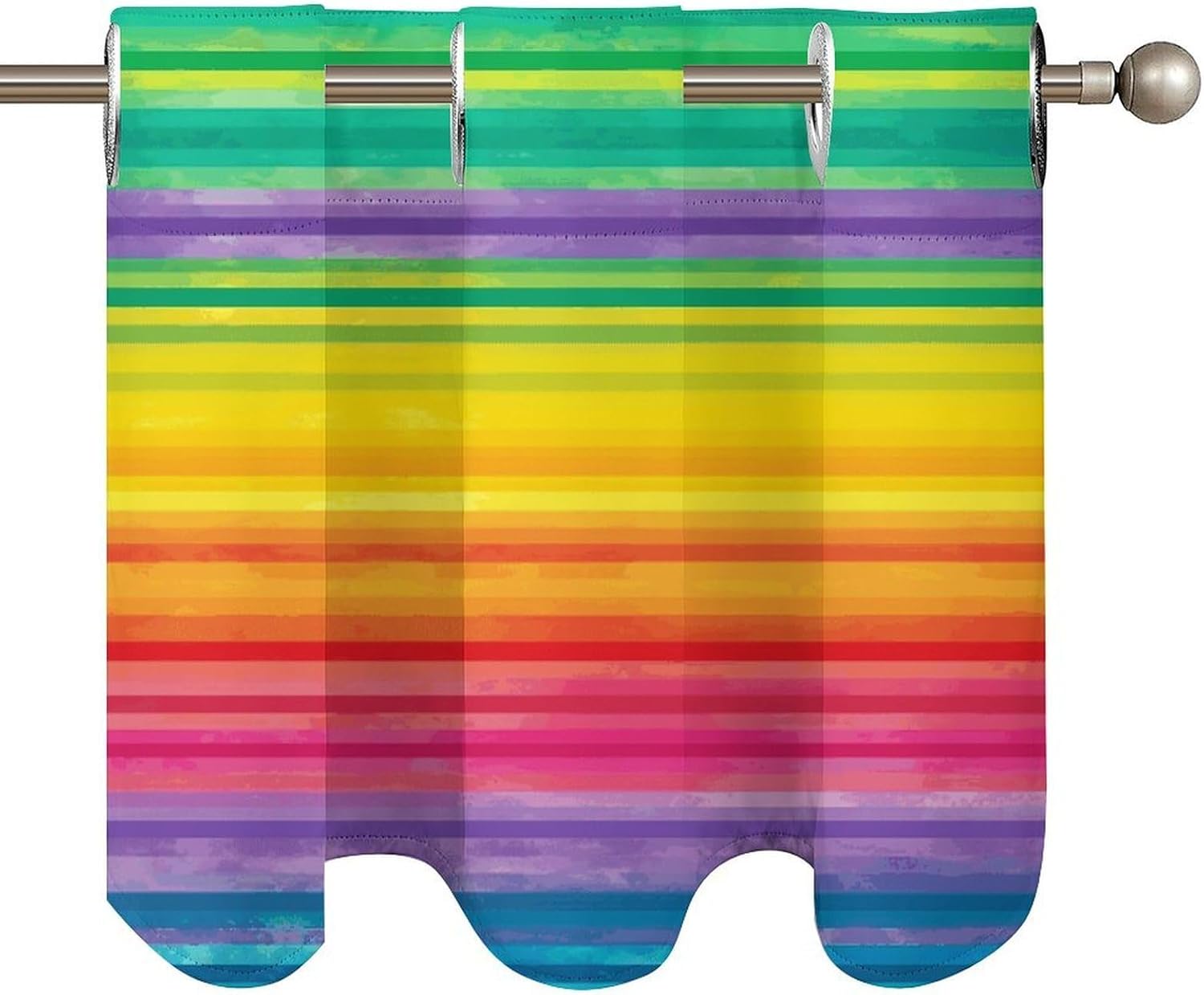 Perfect Pair Printed Curtain - Rainbow Colored Striped Light Filtering Modern Window Décor Elevate your windows with our beautifully designed two-piece Rainbow Colored Striped curtain set, combining a functional printed curtain with an elegant coordinating valance. Crafted for versatility, this Rainbow Colored StripedCurtain is the ideal solution for adding privacy, style, and controlled light to any room. Premium Fabric & Modern Design: Crafted from premium fabric, this Rainbow Colored Striped Curtain maintains a soft hand-feel and a graceful drape over time. The elegant print and smooth texture provide a sophisticated look that enhances your home's ambiance. Optimal Light Filtering & Protection: This Rainbow Colored Striped modern curtain effectively filters harsh sunlight, creating a softly illuminated and comfortable atmosphere. It helps protect your furniture and flooring from UV damage while providing a good level of privacy. The fabric is resilient and designed for easy care. Versatile Application: This Rainbow Colored Striped ready-to-hang Curtain is designed for broad compatibility. The curtain features standard 4.5cm grommets for smooth gliding on most curtain rods. With dimensions of 52" W x 18.1" H per panel, it's perfectly suited for various window styles. Ideal as a charming kitchen curtain or cafe curtain for bottom-up coverage, it also functions perfectly as a tier curtain. Whether you're looking for a stylish printed curtain for your living space, a functional light filtering curtain for a bedroom, or a complete look with a curtain valance, this Rainbow Colored Striped set delivers both style and purpose. Set Includes: Two printed curtain panels Bring a cohesive and stylish upgrade to your home with this Rainbow Colored Striped versatile curtain .
