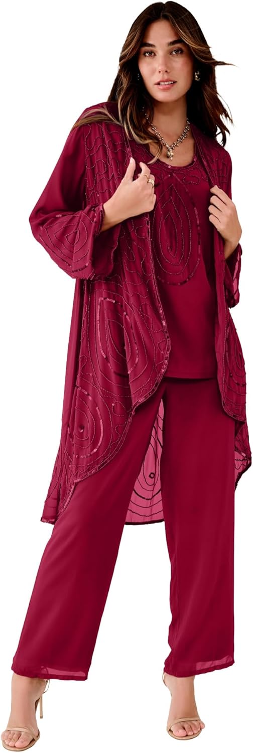 | Style Name | Plus Size Beaded Georgette Scoop Neck 3-piece Pant Set |