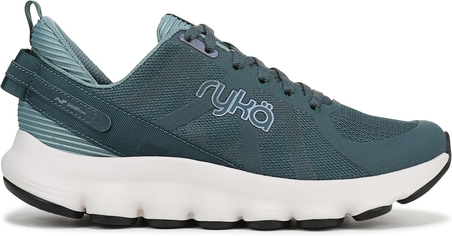 The future of walking starts now in these walking shoes for women with an innovative pod outsole design. BEST FOR: Walk/run interval workouts + Fitness walking. PERFORMANCE TESTED: Proven in lab testing for a midsole design that provides a smooth heel to toe transition, 25 degrees of forefoot flexibility for the ideal amount, high energy return for more spring in your step, and better than average pronation prevention. INNOVATIVE TECH: PodFlow midsole with articulated pods that provide cushioning and stability with targeted support for each part of the foot while promoting natural motion. MATERIALS: Breathable mesh fabric with reflective underlays + Padded collar for extra cushioning. CLOSURE: Secure lace-up front with tongue and heel pull tabs for easy on/off. INSOLE: Anatomical insole with extra arch support + heel support and partially recycled EVA. MIDSOLE: ACTIVenergy™ translucent EVA foam for soft and responsive midsole cushioning + Pods that provide targeted support for each part of the foot while promoting natural motion. OUTSOLE: Compression-molded rubber with decoupled heel rocker and arch support pod. WEIGHT: 236 g/8.3 oz per shoe. HEEL-TO-TOE DROP: 10 mm.