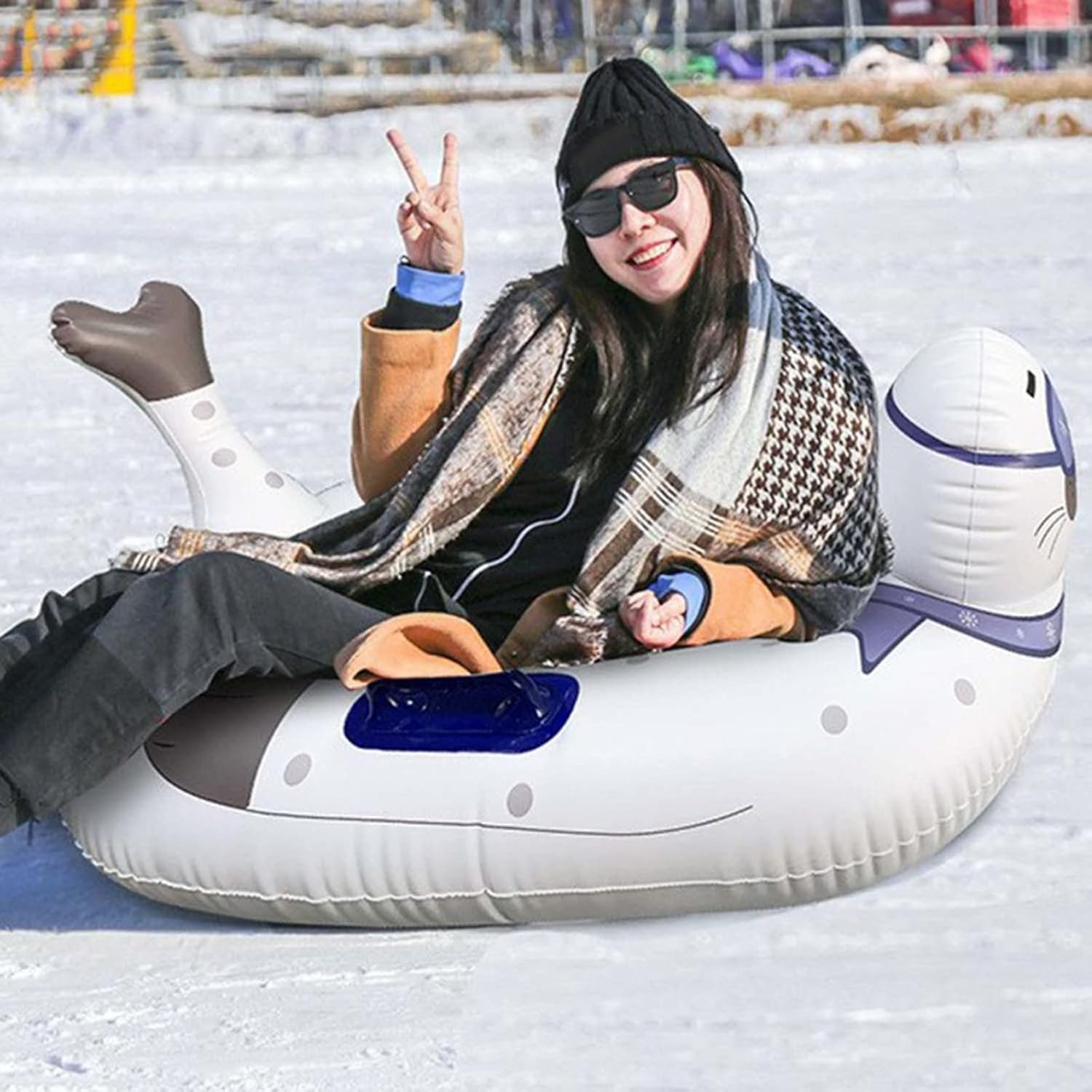 Product Description:The snow tube is made of heavy-duty environmentally friendly PVC material, which is weather-resistant. The inflatable sled inner tube is easy to use and save storage space. Two sturdy handles provide additional safety.Specifications: The seal shape circle will enable your friends and family to enjoy fun of sliding tubes.Specifications:Material: PVCColor: colorfulSpecifications: 120CM in diameter after inflationThickness: 0.6MMPackage Included:1*Ski CircleNotes:1. Due todifference between different monitors,picture may not reflectactual color ofitem. We guaranteestyle issame as shown inpictures.2. Due to personal measurement technique is different, there may be 1-3 cm error ofphysical.Thank you!