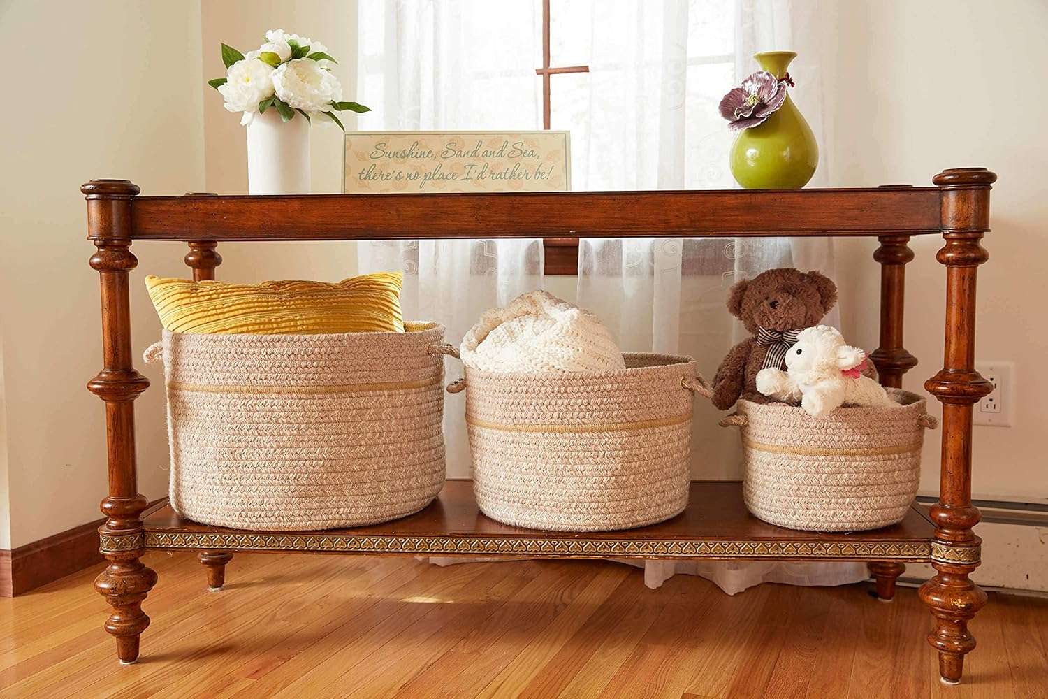 Our cute braided baskets are just what every household needs to keep your space clutter free. Never have a mess again when organizing with our storage baskets. Decorative and fun colors help hide your items in plain sight and driving focus to the basket. These soft textured braided baskets are easy to care for and made in the heart of New England.
