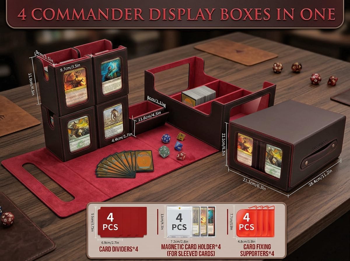 | Included Components | 4 Top Loaders, 4 Dividers, 4 Stoppers, 4 Removable Deck Boxes, Dice Box, Outer Modular Box |