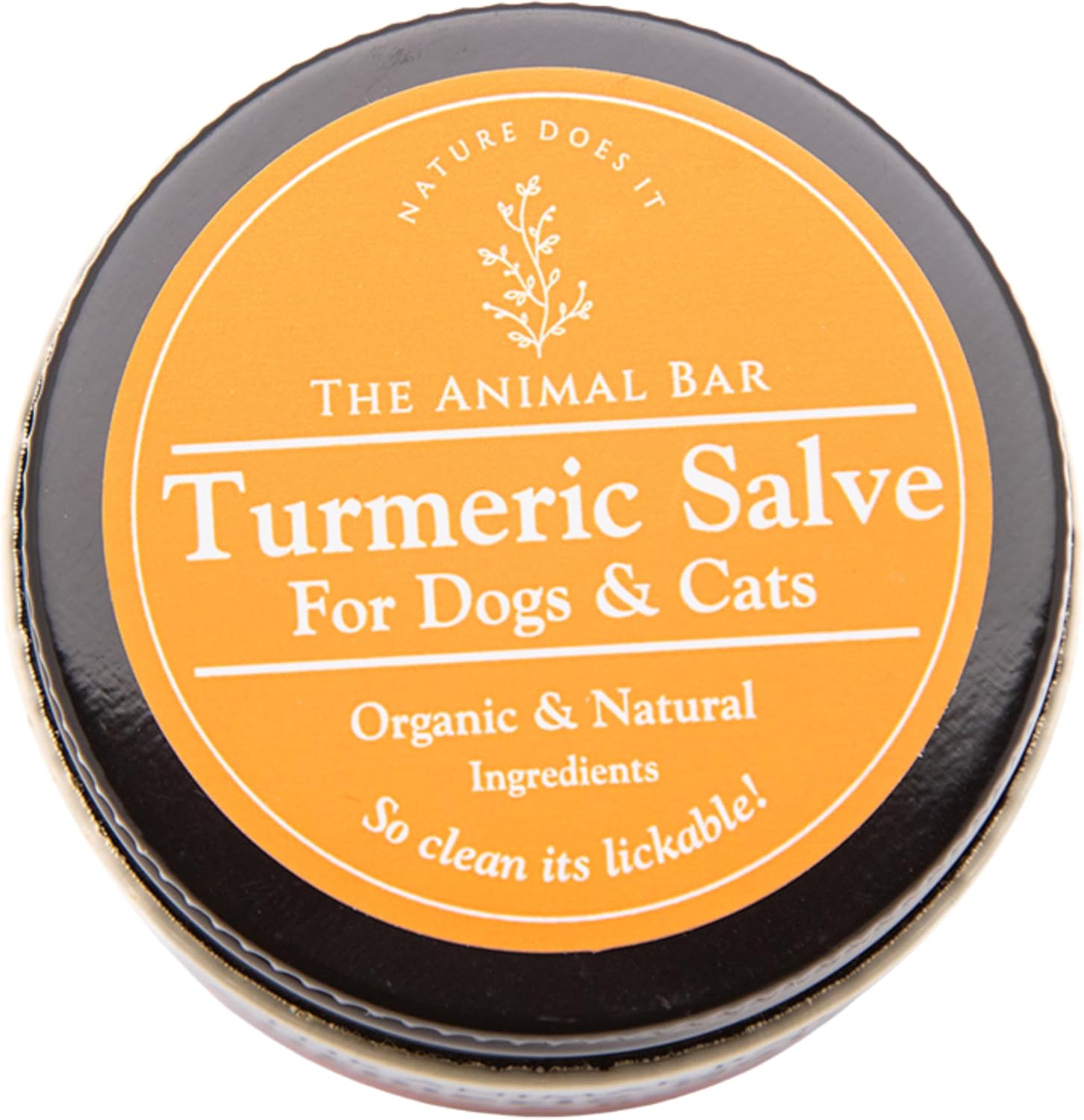 The Animal Bar Organic Turmeric Salve for Dogs and Cats is a veterinarian-formulated, all-natural skin care solution designed to soothe and protect your pet’s skin. This healing salve combines organic turmeric extract—known for its powerful anti-inflammatory and antioxidant benefits—with a blend of clean, plant-based ingredients to naturally support dry, itchy, or irritated skin. Ideal for use on hot spots, insect bites, cracked paws, dry noses, and other minor skin issues, it delivers gentle relief while promoting healthy skin. Safe if licked and free from harsh chemicals, synthetic additives, and artificial fragrances, this pet-safe formula is perfect for sensitive dogs and cats. Packaged in a 2 oz reusable glass jar with a metal lid, it’s a sustainable, plastic-free choice for eco-conscious pet parents. Use it daily as part of your pet’s grooming routine or as needed to help soothe and protect problem areas. Give your pet the natural care they deserve with this turmeric herbal salve.