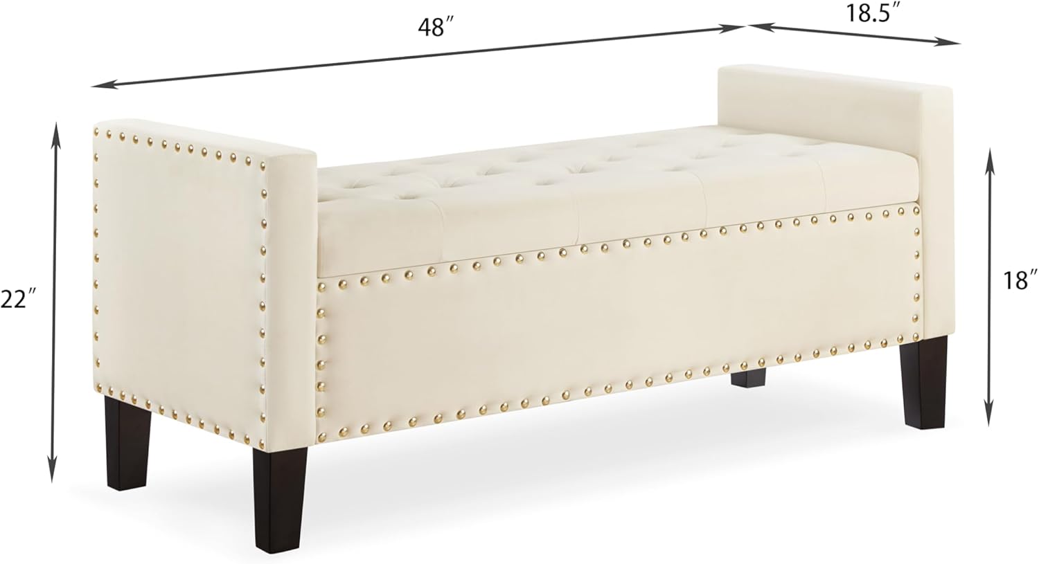 | Item Type Name | ACQCA Velvet Storage Ottoman with Armrests, Upholstered Button Tufted Entryway Bench with Nails Trim for Bedroom End of Bed, Living Room,Cream |
