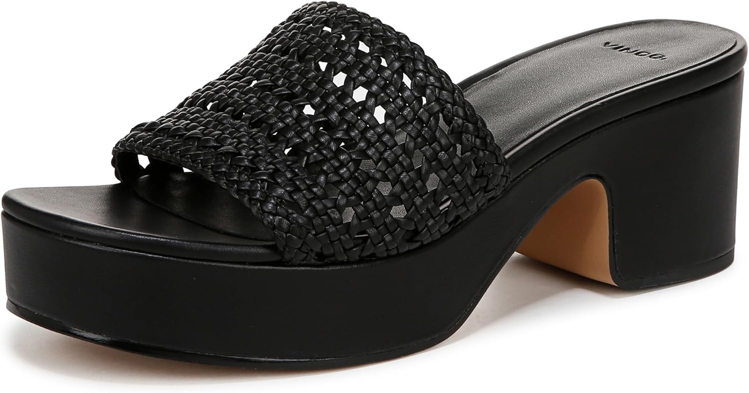 A chunky platform and block heel elevate a retro-inspired slide sandal for women rendered in smooth leather.