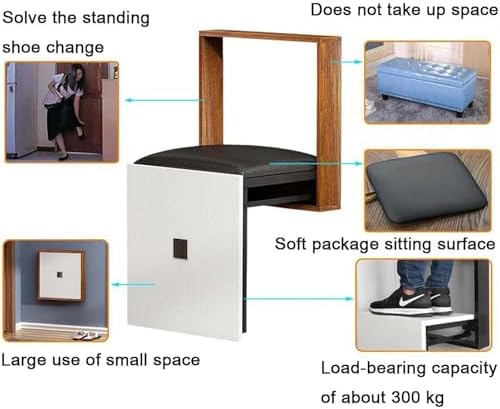 Transform your living space with our versatile wall-mounted folding chairs, designed for various areas including the living room, bedroom, entrance, and lounge. These chairs not only provide comfort for the elderly and young alike but also make thoughtful gifts for loved ones. **FUNCTIONALITY:** 1. Crafted from durable aluminum alloy, our folding chair boasts a sturdy structure that supports up to 300 kg, ensuring reliability for all users. 2. The seating surface is made of soft leather, offering a comfortable experience. Its ergonomic design promotes proper seating height, allowing for prolonged use without discomfort, and it's easy to maintain. 3. Our environmentally friendly, paint-free finish gives the chair a sleek, smooth exterior that is scratch-resistant, wear-resistant, waterproof, and dustproof for hassle-free care. 4. This wall-mounted shower stool enhances safety and comfort during bathing. It eliminates the need to stand while changing shoes, providing confidence for the elderly, children, and pregnant women, ensuring peace of mind for your family. **SPECIFICATIONS:** - Name: Foldable Changing Stool - Material: Synthetic Board + Leather - Dimensions (Folded): 39.5 x 43.5 x 7.5 cm - Dimensions (Unfolded): 69.5 x 36.5 x 35.5 cm - Suitable for: Entrance hall, bedroom, bathroom, hallway, living room, and more. **PACKING LIST:** - 1 x Folding Shoe Bench For any inquiries, feel free to contact us, and we promise to respond within 24 hours. Elevate your home experience with our practical and stylish folding chair today!