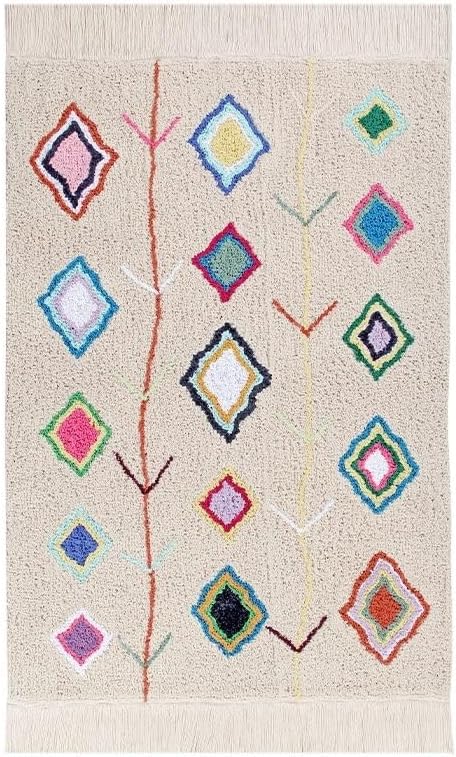 | Product Care Instructions | Machine wash separately (8kg+), delicate 30ºC, no bleach, mild detergent, no softener. Low spin for braids/fringes/pom poms. Remove wet rug promptly. Tumble dry low, avoid sun. Lint is normal. Brush first days, then vacuum (no robot vacuums). Trim loose threads with scissors, never pull. Keep away from fire. |