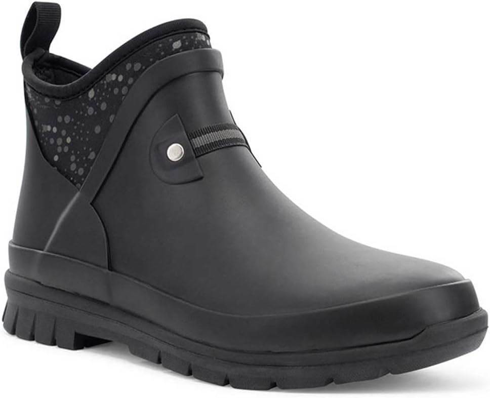 Brave any weather with confidence in our women's ankle rain boot, crafted from premium waterproof rubber and enhanced with insulated neoprene lining. The stylish plaid print adds flair to its functionality, while the cold rating of up to -20 degrees ensures warmth, and the convenient heel loop allows for effortless on and off while you're on the move.