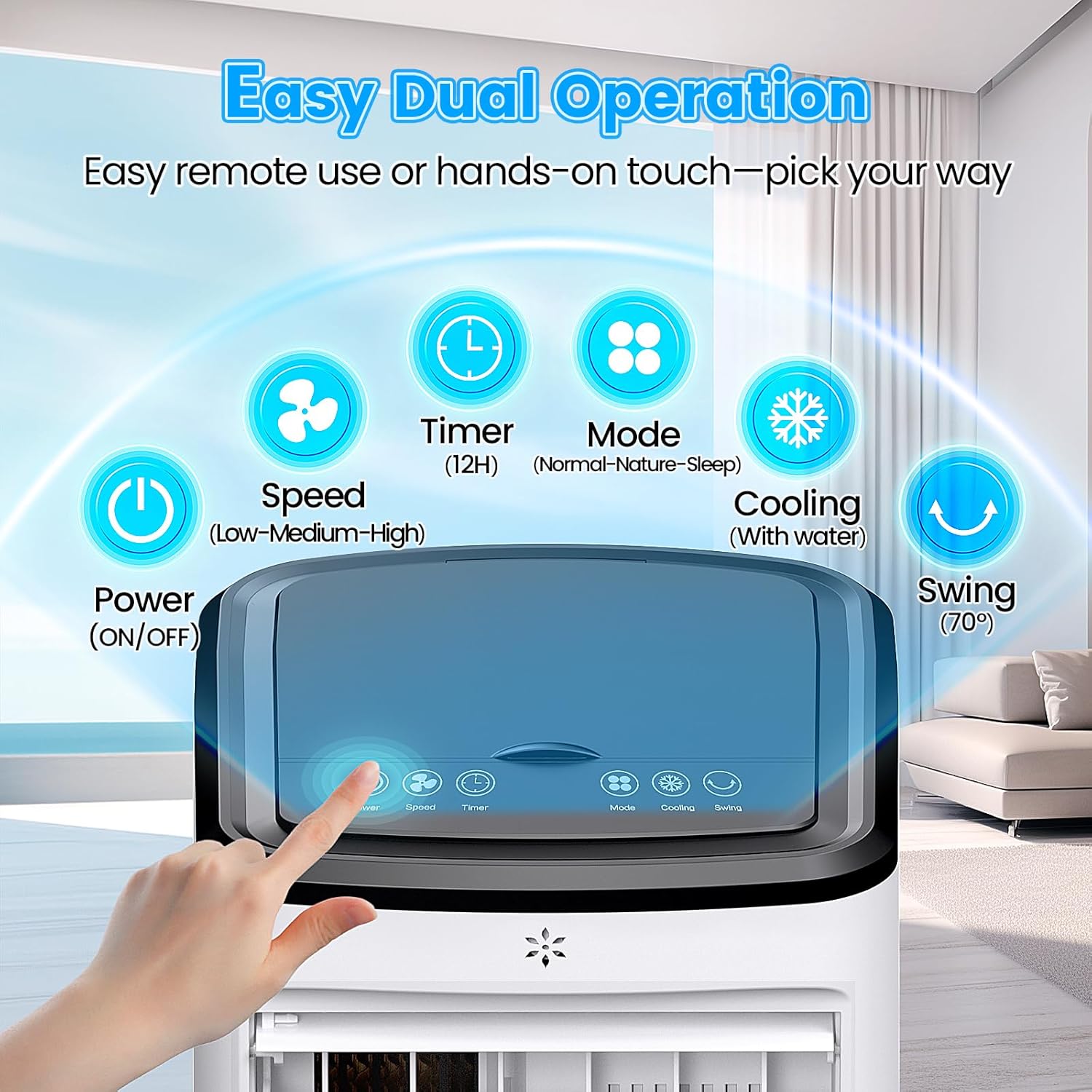 | Special Feature | 4 Modes (Normal/Natural/Sleep/Cooling Mode) & 3-Speeds (L/M/H), 6 Ft Cord & 12H Timer for Smart Auto Shut-Off, LED Screen & Remote and Panel Dual Control, Lightweight & 4*360° Wheels Easy for Mobility, Upper & Bottom Double Water Tanks |